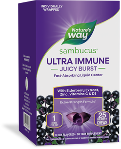 Sambucus Ultra Immune Juicy Burst—Immune support in every bite.* With black elderberry + vitamin C + vitamin D3 + zinc. For adults and kids 4+.