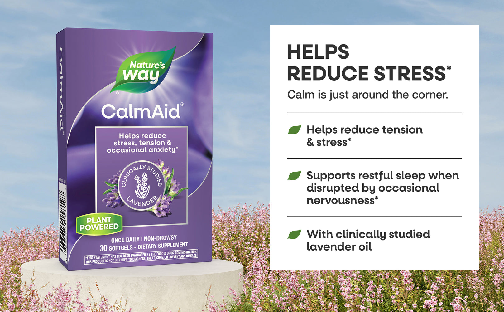 Silexan is a clinically studied, non-habit forming oral lavender oil and is used in Nature’s Way best-selling CalmAid. This trusted ingredient has been clinically proven to help reduce occasional anxiety and feelings of stress and tension, as well as support more restful sleep disrupted by occasional anxiety.*
