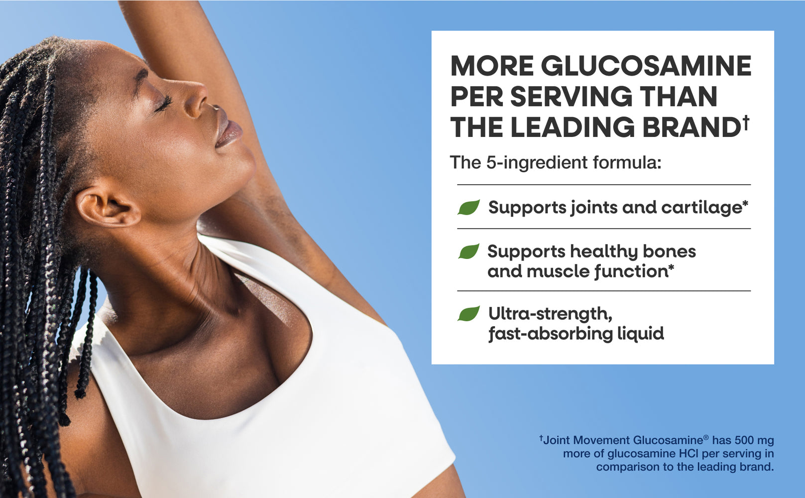 Joint Movement Glucosamine has a fresh new look, and it now contains stevia instead of sucralose. However, the formula maintains the same amount of key ingredients including Glucosamine, Chondroitin, MSM, Hyaluronic Acid, and Vitamin D3 to give you the high-quality, extra-strength liquid supplement you expect from Joint Movement Glucosamine.